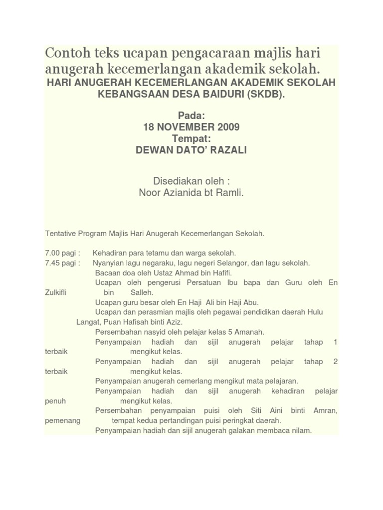 Contoh Teks Ucapan Pengacaraan Majlis Hari Anugerah Kecemerlangan Akademik Sekolah Pdf